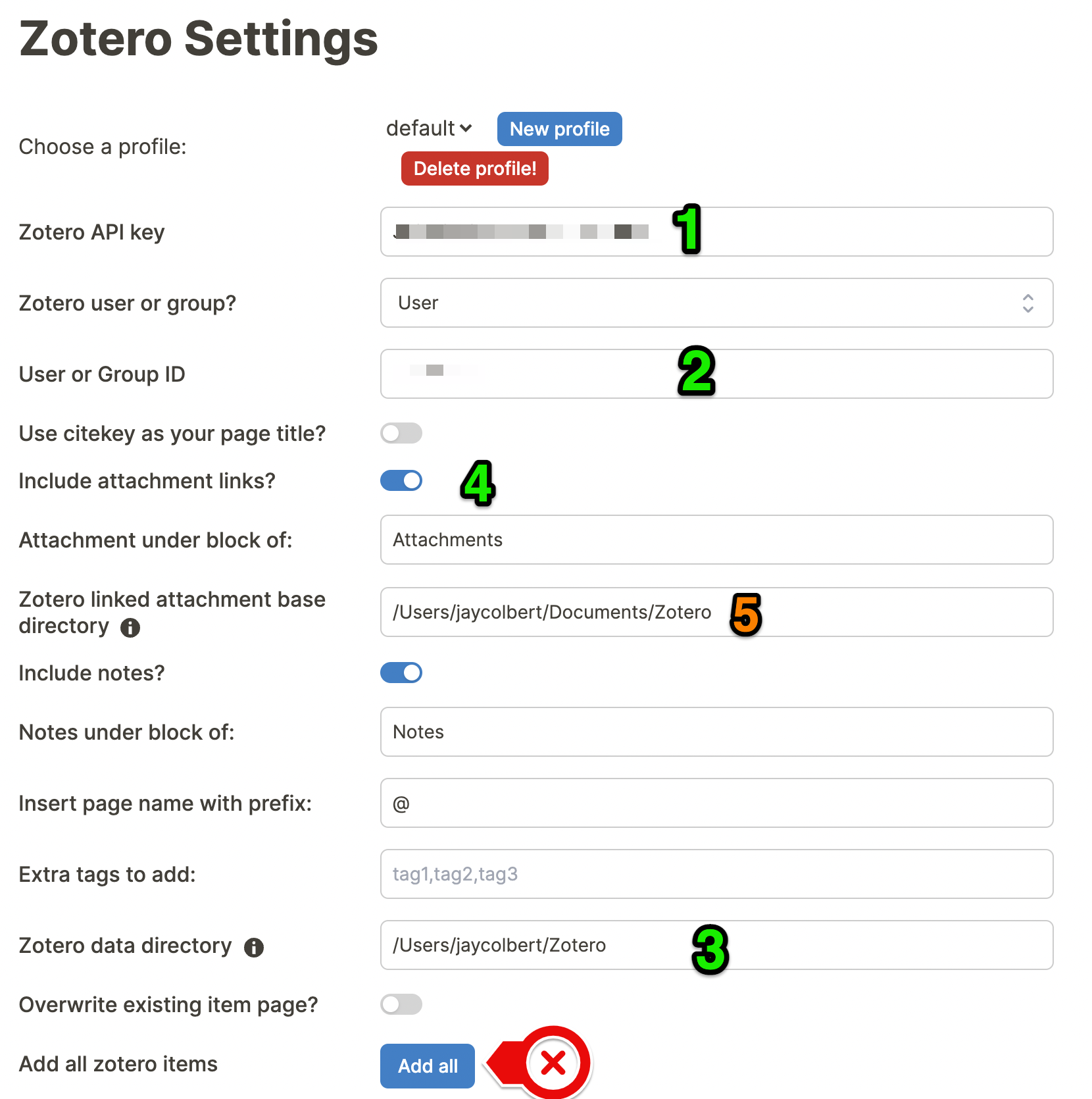 /Users/yourusername/Zotero - Edit the other fields to your preference. I recommend toggling on “Include attachment links?” and “Include notes?”.[4] Again, notes don’t work right now, but it can’t hurt to future proof.