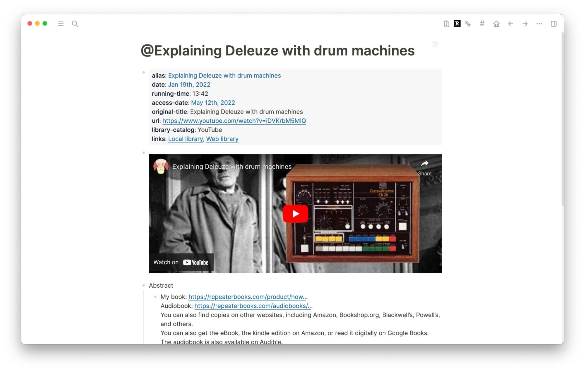 To give a better sense of what the Zotero integration looks like in action, I’m going to briefly walk through my process of creating a reference note and citing the work in what I’ll call a Zettel.[6]
