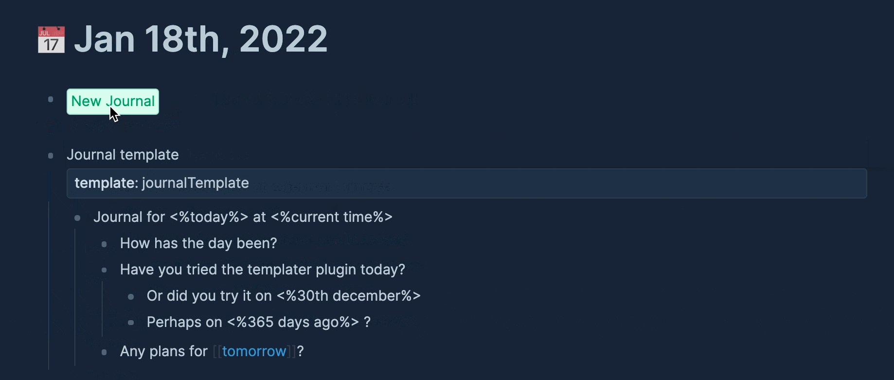 Have you set up a template you want to use every day? Great! Now let's see how to make it appear on the fresh Journals page you get every day at midnight.