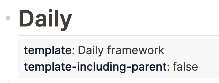 When creating the template trigger in the third step, you'll be able to set if you want to make this parent block part of the template or not. Many people who decide to include this parent block in their template often add links to it. This way, all blocks that are part of the template will be tagged with those links when you run the template. Keep this in mind as you structure your daily template.